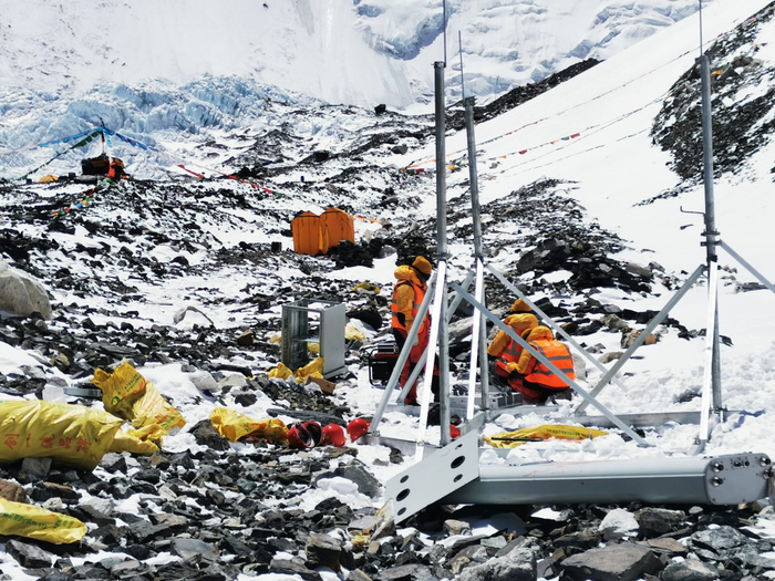 同时,珠峰极端多变的天气也极大地增加了建站的难度。有时候原本已准备好投入建设,结果因突如其来的暴风雪被迫搁置。珠峰上风和日丽的日子屈指可数,只有抓住四、五月两个月的窗口期,才有可能使施工顺利完成。