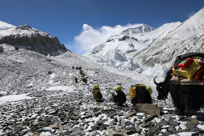 为保障好此次行动,中国移动共派出150余名员工负责建设与维护保障。由于珠峰车辆无法到达,好几吨重的光缆、天线、辅料等施工物资只能依靠人工背、牦牛驮的方式搬至营地,仅从5300米攀登到5800米,走一趟就需要8小时,而从5800米基站去到6500米基站,则需要走上两天。
