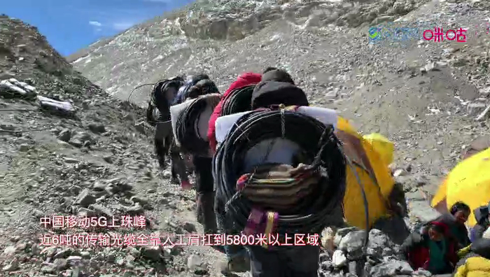 中国移动5G建设人员及设备在珠峰徒步挺进