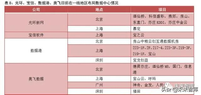 提前在一线地区布局的 IDC 服务商:光环新网(300383)、宝信软件(600845)、数据港(603881)、奥飞数据(300738)等。