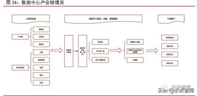网络通信则包括光模块(中际旭创、光迅科技等)、光纤光缆(长飞光纤、烽火通信等),以及基础网络服务(移动、电信、联通三大运营商)。机柜厂商则主要有广达、纬颖、科华恒盛等。