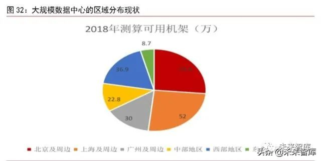 我国 IDC 集中围绕一线城市布局。由于中西部地区的信息技术条件、客户基础与发达地区仍有一定的差距,目前我国数据中心的建设与全球 IDC 发展的趋势较为吻合,侧重往发达地区靠拢。据信通院数据显示,2018 年全国测算可用机架为 204.2 万家,其中北京及周边地区 53.8 万架,上海及周边地区 52.0 万架,广州及周边地区 30.0 万架,北上广三地及周边地区累计机架达到 135.8 万架,占全国总机架的比例达到 66.5%。