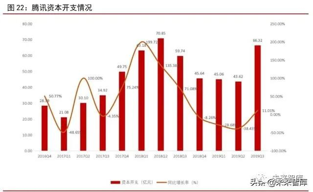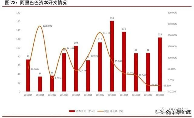 腾讯 2019Q3 资本开支扭降为升,阿里 2019Q4 开始加码数据中心建设。国内两大云计算巨头(阿里、腾讯)资本开支总和同比增速在 2018Q2 达到高点后,随后呈现出不断回落的态势,2019Q2 同比降幅高达 28.02%。进入 2019 年三季度,两大巨头资本开支合计为 189.32 亿元,同比下降 14.23%,降幅较二季度出现明显收窄,主要系腾讯在三季度加大服务器的采购所推动。具体来看,腾讯 2019Q3 资本开支为 66.23 亿元,同比增长11.01%。阿里则受去年同期高基数影响,2019Q3 资本开支同比下降 23.60%至 123 亿元。
