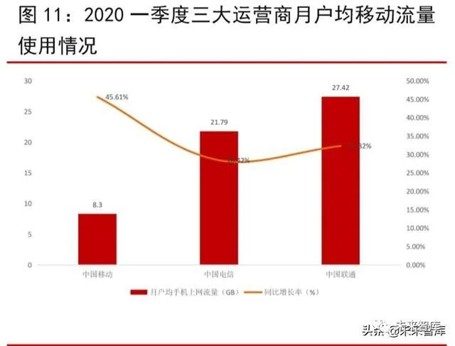 目前,我国移动、联通、电信三大运营商持续加大 5G 商用的推广力度,均有针对 5G 套餐推出云游戏、高清视频、AR/VR、直播等多个应用,并对入网用户给予一定幅度的套餐优惠。4 月 23 日,三家运营商已披露 2020 年一季度业务数据,除联通未披露 5G 用户数量外,移动、电信一季度 5G 用户分别达到 3172 万和 1661 万户,环比分别增长 1143.92%和 260.30%。月户均移动流量方面,移动、电信、 联通一季度分别为 8.3、 21.79 和 27.42GB,同比分别增长 43.59%、37.39%和 32.32%,继续保持较高的增速。借鉴韩国 5G 商用的经验,我们认为,随着国内 5G 用户基数不断扩大,在云游戏、超高清视频等 2C 应用的引领下,移动数据流量即将进入新一轮爆发期。