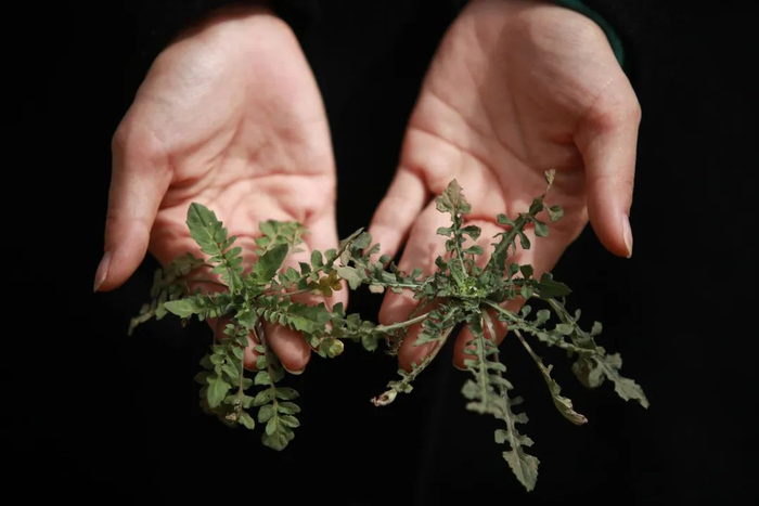 2013年3月6日,西安长安区,不易分辨的荠菜(左)和“辣辣菜”(右)