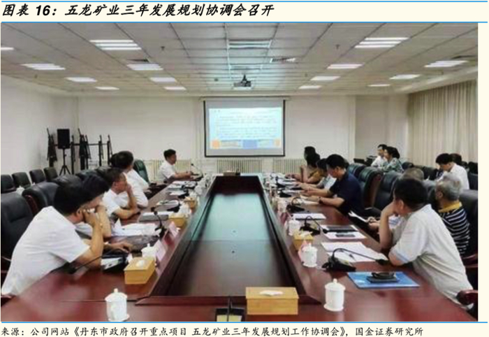 五龙矿业位于辽宁省丹东市,该矿山为2013年重大资产重组收购标的。根据公司网站2019年7月21日发布的《丹东市政府召开重点项目 五龙矿业三年发展规划工作协调会》,五龙矿区被确定为国家科技部“深地资源勘查开采”重点项目,具备未来可以媲美胶东地区的发展前景。王建华董事长表示,公司已将五龙项目确定为集团发展的重点项目,集团在资源上全力倾斜,在人力、物力上加大投入,争取用三年时间,把五龙矿业发展成丹东地区安全环保标杆型企业、机械化自动化的先进企业,最有发展前景的矿山企业,打造丹东乃至东北地区最靓丽的生态旅游矿山品牌。
