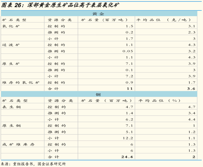 3.3境外黄金板块:探矿增储空间大 深部原生矿品位高