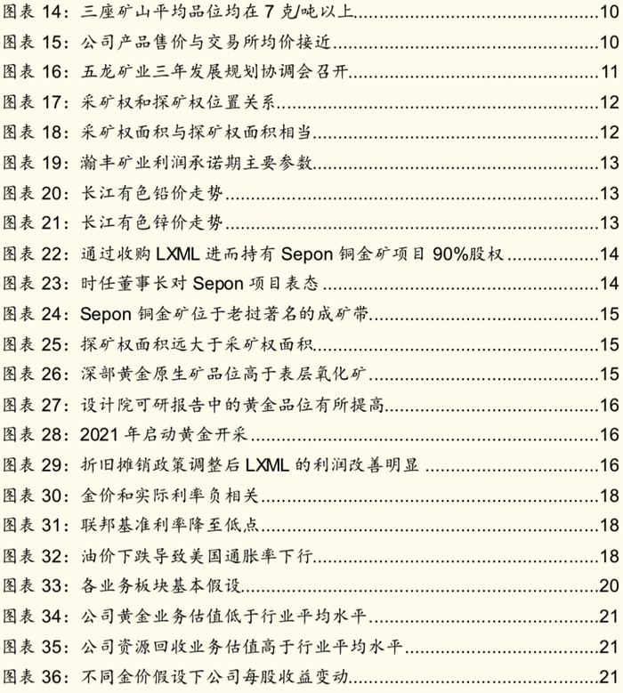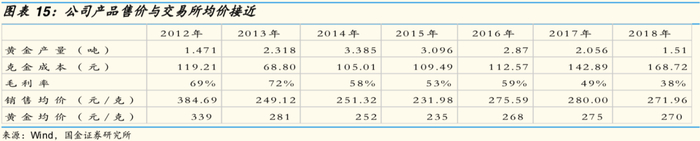 根据公司 2019 年债券评级报告,2018 年公司原矿产量 38.39 万吨、同比 增加 21.51%,黄金产量 1.51 吨、同比减少 26.56%,延续了产量下滑的趋势。在原矿处理量增加的背景下,在采矿环节,黄金产量下降主要与入选品位下降 有关。2013-2016 年由于吉隆矿业和五龙矿业处于利润承诺期内,同期黄金价 格单边下行,为了保证完成利润承诺,公司较多采用高品位矿石,导致三级矿 量不平衡,探矿储备不足。除了采矿环节的影响外,选厂改造对产量也有一定 影响。2017 年国家环保要求提高,氰渣被列入危废名录,公司对吉隆矿业、华 泰矿业的选厂进行技改,增加了脱氰工艺,导致选厂停产一个月。