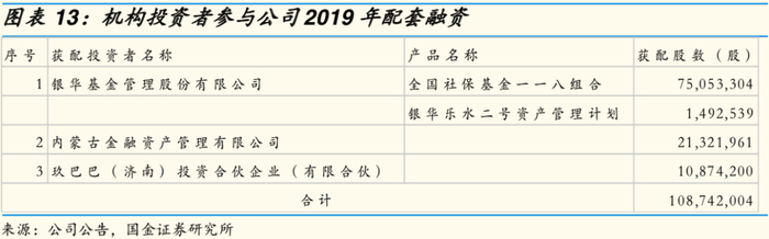 2019年公司发行股份购买瀚丰矿业100%股权,并配套募集资金。参与配套融资的机构包括银华基金、内蒙古金融资产管理有限公司等战略投资者。由于本次定增依然按照“老规则”发行,机构投资者的参与显示了对王建华董事长经营理念和对公司前景的看好。