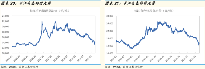 短期看,随着美联储向市场中注入流动性,全球金融市场恐慌的情绪有所缓和,金价出现反弹。中期看,由于美国利率已经降至 0-0.25%区间,后期金价走势受通胀率的影响大。由于疫情的影响尚未结束,对全球经济和通胀率的影响仍不明朗,因此我们选取 350 元/克(2020 年 Q1 国内黄金均价)作为2020-2021 年金价运行价格中枢,较 2019 年上涨 12%。