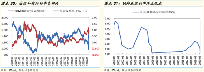 从中长期趋势看,金价走势与美元的实际利率最为相关。黄金作为一种类货币,其本质上与美元是一种替代品,投资者通过比较两者的持有收益来决定选择黄金还是美元。美元的投资收益为实际利率,实际利率下行时,投资者倾向于选择黄金;实际利率上行时,投资者倾向于选择美元。
