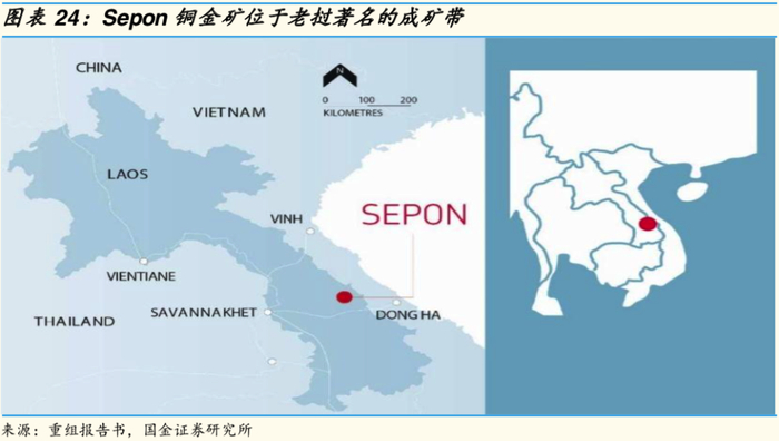 Sepon铜金矿是老挝最大的矿山,享有包括矿区在内的合计1247平方公里范围内的矿产资源勘探及开采的独占权利。采矿证范围仅为99.31平方公里,探矿证范围高达1150平方公里。我们认为,Sepon铜金矿后续增储潜力大。
