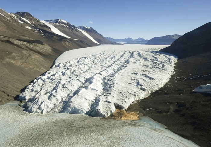 2016年11月11日,南极麦克默多站附近的泰勒冰川加速消融。