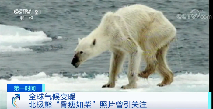 这给当地的野生动物造成了很大影响,比如北极熊,捕食猎物要站在浮冰上,随着浮冰变薄,越来越多的北极熊就被困在陆地上,不能追捕海豹、海象等猎物,迫使它们前往陆地寻找食物。