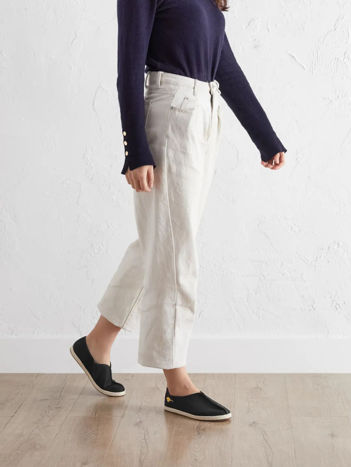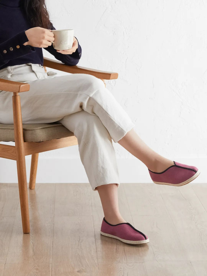 禅意款相对于经典款而言,两面收拢的设计,上脚与柔软的棉麻布料贴合度高,显得脚型秀气瘦长,适宜脚型偏瘦,追求上脚美感的人群。