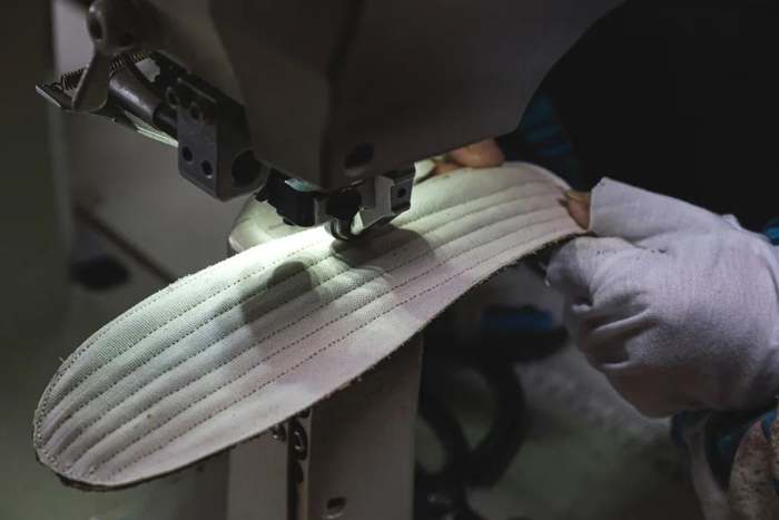 接着每片鞋垫需要车八道线,保证每道线之间间距足够小,使艾绒均匀分布,不会跑绒。鞋垫才算完成。