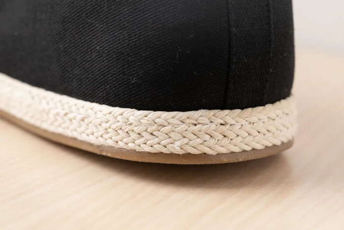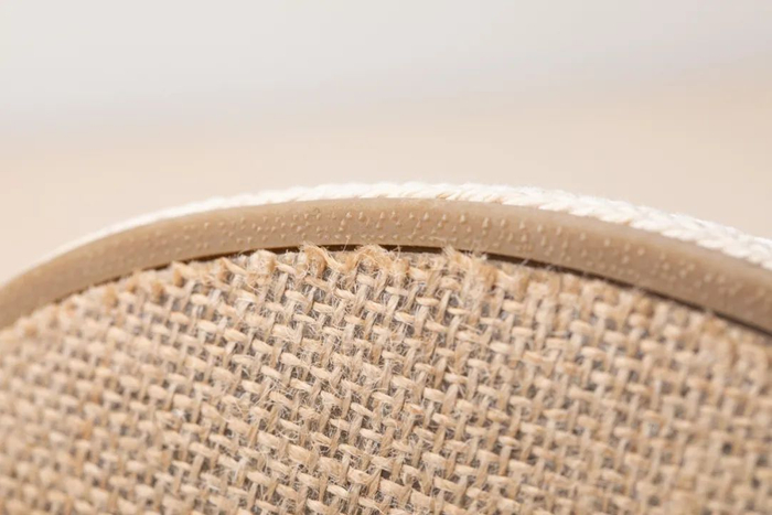 用麻绳包边的橡胶底边,需要再缝制一次,确保麻绳固定牢靠,不会轻易脱落。