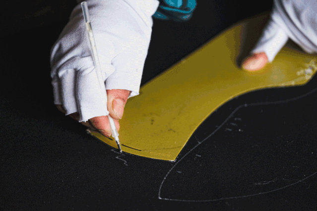 鞋帮:制作鞋帮,首先要画料,剪料,依次得到鞋里布,面布,后跟条。