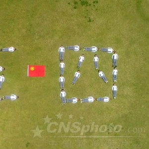 △ 2020年5月2日,浙江省湖州市长兴职教中心,青年学生在操场上摆出“五四”造型,与团旗合影。中新社发 谭云俸 摄