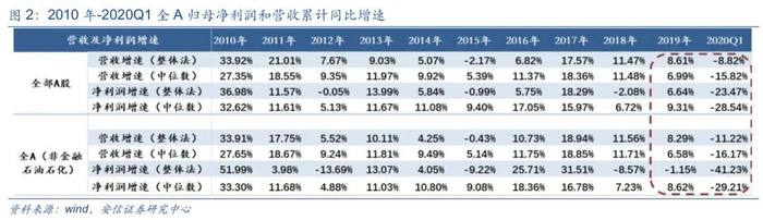 以上问题将是本文着重探讨的问题,在后文我们将附上2019年报和2020年一季报各板块和行业简要解读。需要说明的是,若无特殊说明,业绩指标均采用整体法测算。