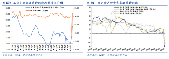 从宏观层面来看,制造业的核心是需求复苏,相信未来会有较好的改善,内需恢复很可能好于市场预期。从上文疫情之下财务逻辑转变中,我们可以看到当下之急是需求的大幅萎缩。换句话说,就是订单不足,同时导致库存上升,投资能力受到压制。具体而言,4月制造业PMI为50.8%,比上月回落1.2个百分点,说明虽然较上月继续改善,但扩张力度有所减弱。同时,3月末产成品存货同比增长14.9%,较2月进一步回升,说明需求不足的情况下制造业库存上升。在这样的背景下,制造业投资意愿将受到压制,可以看到1-3月制造业投资增速为-25.2%,但已经有所改善。因此,当前制造业的核心是要让需求复苏,我们认为未来一个阶段相应的一揽子宏观政策措施值得期待。3月27日,中共中央政治局会议指出,积极的财政政策要更加积极有为,稳健的货币政策要更加灵活适度,适当提高财政赤字率,发行特别国债,增加地方政府专项债券规模,引导贷款市场利率下行,保持流动性合理充裕。强调“努力完成全年经济社会发展目标任务,确保实现决胜全面建成小康社会、决战脱贫攻坚目标任务。”我们认为,相较于二月政治局会议的“实现决胜全面建成小康社会、决战脱贫攻坚方针任务”,新增“确保”二字,充分反映了决策层的坚定决心,我们认为未来一个阶段相应的一揽子宏观政策措施值得期待,在这一揽子措施推动下,内需恢复情况也很可能会好于当前市场预期。