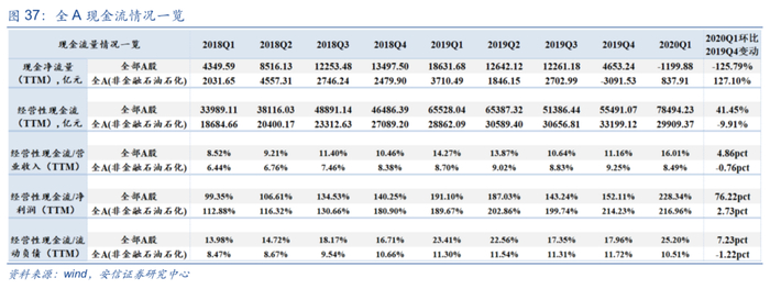 因此,我们将按照现金流-收入质量-盈利质量-资产质量的角度对A股2019年报和2020年一季报进行分析,来观察A股整体和各行业在疫情下的财务逻辑。