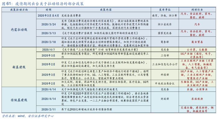 疫情后期阶段3:疫情长期结构性影响显现,看总资产规模扩张能力。疫情后期阶段3,经济活动基本已经不受疫情影响,这时候疫情的长期结构性影响开始显现,有些行业已经摆脱疫情的影响,但有些行业依然会受到疫情的长期牵制,市场更注重总资产规模扩张能力,政策大力支持的领域将成为重点方向。例如,以新基建为核心的科技领域。