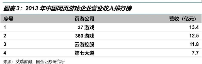 ◾ 精细化运营:三七互娱于2011年从页游起步,在缺乏资源、产品、人才的困境中成功突围,追求以”低利润率、精细化运营和定制化服务”打造差异化联运平台,打造初期平台优势。并凭借已展现的高水平精细化运营能力拿下《秦美人》、《龙将》的独家代理资格,跨出代理发行路上的第一步。据艾瑞咨询统计, 2013年明星产品《秦美人》收获4.8亿元充值流水,并在公司财务报表中以20.83%的营收占比超过了2012年的明星产品《神曲》。三七互娱2012年在中国页游企业营收排行榜中位列第三,2013年位列第一名(腾讯不计入)。
