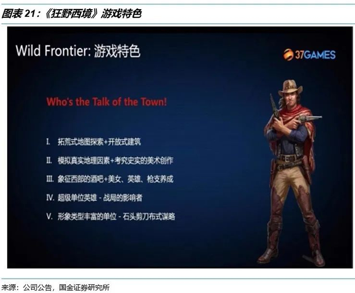 ◾ 针对出海市场,2020年三七储备了《Wild Frontier/狂野西境》《Final Order》和三消/合成/塔防/益智SLG三部SLG作品。其中,刘宇宁团队新作《狂野西境》于3M2020上线,预注册数已过亿,预计《狂野西境》出海成功概率很高原因系: