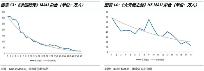 ◾ 在三七互娱的产品不断迭代和精细化运营之下,传统RPG游戏MAU半衰期不断延长,单用户预期生命时间拉长,推动LTV提升。据Quest Mobile,12M2014《传奇霸业》MAU在3个月后衰减至50%,7M2018《屠龙破晓》经7个月衰减至50%,时间延长超100%;11M2016《永恒纪元》峰值衰减至50和25%所用时间分别为7个月和13个月,9M2017《大天使之剑H5》衰减至50%和25%所用时间分别延长至13个月和15个月。