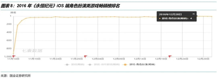 ◾《永恒纪元》作为三七互娱的经典产品,其在游戏画面、战斗系统、剧情展现等方面都对手机配置有一定要求。而云游戏将核心运算置于云端的特点降低了适配性要求,能更深入覆盖下沉市场用户,挖掘《永恒纪元》在云游戏框架下更深层增长空间。《永恒纪元》这一经典IP本身也有较高层次用户基础,2016年手游发行一周后稳居iOS端角色扮演游戏类畅销榜TOP30,最高排名第四,至今仍流水稳定,显现出“长跑型”体质,生命周期在同类游戏中首屈一指,也非常适合作为“试验田”,用以积累经验,便于未来大规模移植乃至“平台化”。