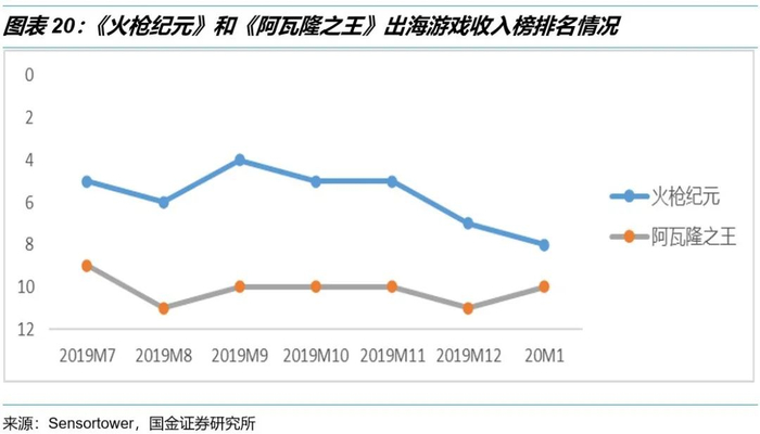 ◾ 研发团队:《狂野西境》由刘宇宁团队创作,刘宇宁团队曾经成功研发出热门SLG游戏《阿瓦隆之王》和《火枪纪元》,7M2019-1M2020期间,《火枪纪元》始终保持出海游戏收入榜前十,《阿瓦隆之王》保持在9-11名之间,《阿瓦隆之王》上线后曾成功两度登顶美国畅销榜。
