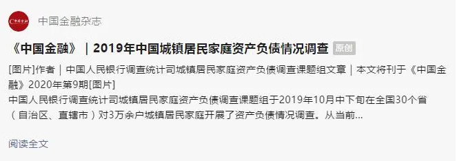 上个月,央行的一份报告替城镇居民算了这笔账。4月24日,星期五,一份题为《2019年中国城镇居民家庭资产负债情况调查》的报告,出现在《中国金融》杂志的微信公众号上,随即引发热议。