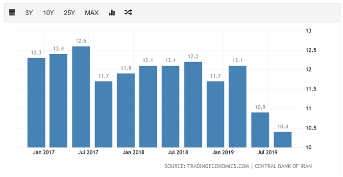 伊朗统计中心3月15日的一份报告中预测,在伊历1398年(2020年3月21日结束),伊朗非石油国内生产总值增长率将为0%,而总体国内生产总值增长在-7.2%左右。该中心估计农业、天然气和石油、工矿和服务业的增长率分别为3%,-37%,2.2%和-0.1%。