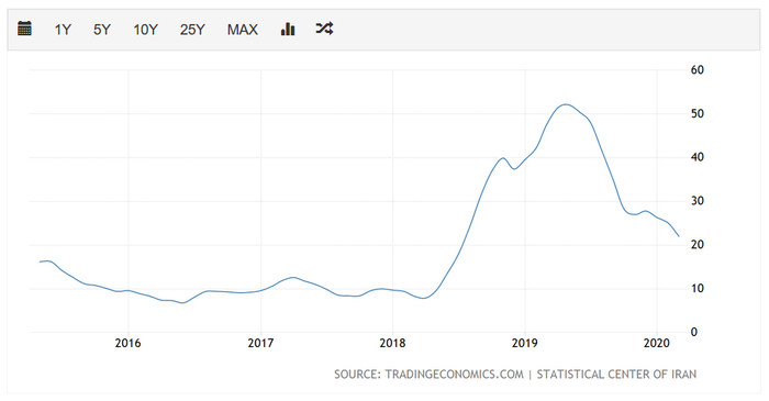 伊朗《德黑兰时报》3月22日报道,伊国家统计中心(SCI)发布数据显示,伊上财年(2019年3月至2020年3月)通胀率为34.8%,较前一年下降2.2%。同时,上财年最后一个月(2020年2月至3月)通胀率环比上月下降3%,其中城市地区通胀率下降2.9%,为22.2%;乡村地区通胀率下降3.3%,为21.1%。