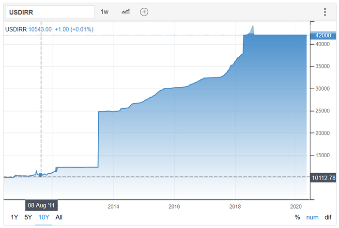 特别是自2018年5月,美国总统特朗普宣布退出伊核协议并分阶段重启了对伊朗的制裁以来,伊朗里亚尔兑美元的贬值速度越来越快。