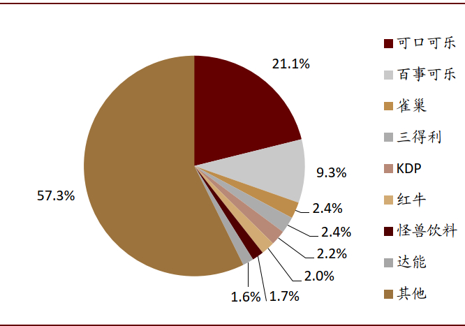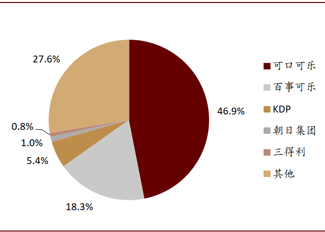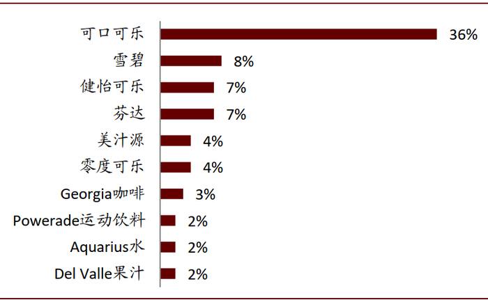 图表: 2019年全球前10大碳酸饮料销售占比(销售量)