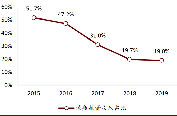 图表: 2015-2019年公司装瓶投资收入占比下滑