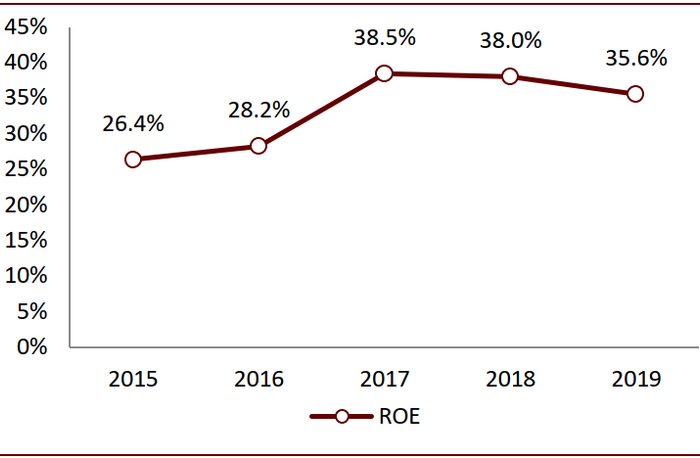 回归轻资产模式,渠道质量与掌控力更佳。装瓶商系统的演变,使可口可乐在全球化管理上不断精细化,渠道掌控持续增强,渠道护城河进一步加强。受益于再造特许经营系统战略,公司回归至轻资产模式,2019年可口可乐装瓶投资收入占比从2015年的52%降至19%,ROE则自2015年的26%升至39%。目前,公司全球绝大部分装瓶业务均由战略装瓶商或大型独立装瓶商负责,质量管控得以提升。