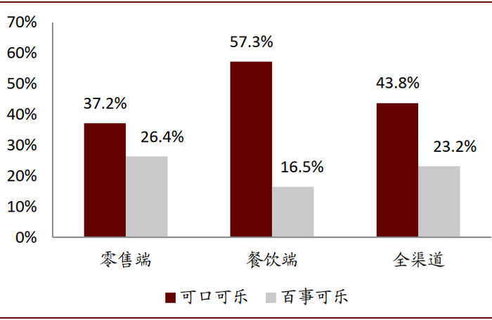 资料来源:Euromonitor,中金公司研究部;注:红色为可口可乐品牌,灰色为百事可乐品牌
