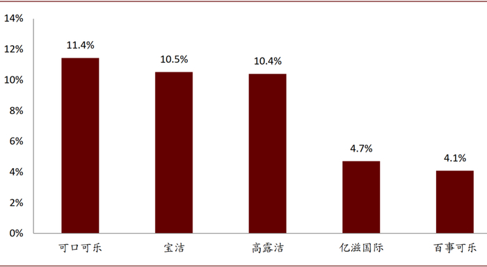 资料来源:各公司年报,中金公司研究部;注:可口可乐与宝洁为2019年数据,其余为2018年数据
