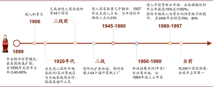 资料来源:公司官网,公司年报,《可口可乐品牌跨文化传播研究》,中金公司研究部