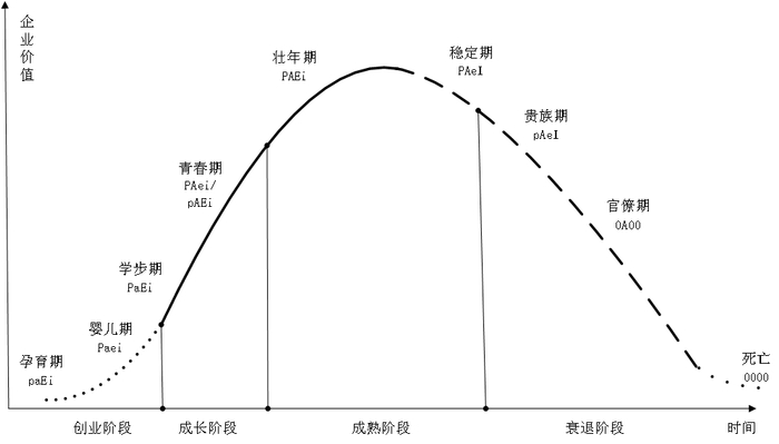 进入学步期、青春期、壮年期之后,企业价值快速成长,并达到峰值。从稳定期开始,企业价值在贵族期、官僚早期和官僚期持续下降,并最终在死亡时清零。