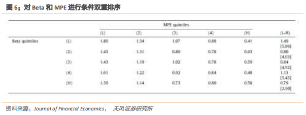 作为稳健性,表6报告了对市场beta和MPE进行的有条件双重排序的结果。在每个月中,首先根据市场beta(从一年的每日收益估算)将股票分类为五分位数。然后,在每个五分位数内,根据股票的MPE将股票进一步分类为五分位数。报告了25个结果组合的平均超额收益,以及每个beta五分位数内具有MPE低的多头股票和MPE高的空头股票的投资组合。我们可以观察到,即使控制了市场贝塔值,MPE策略仍然可以产生可观的平均回报。在五个市场Beta投资组合中,多头/空头MPE投资组合的最低平均收益等于79个基点。因此,我们得出的结论是,我们记录的效果与针对β的博彩效果截然不同。