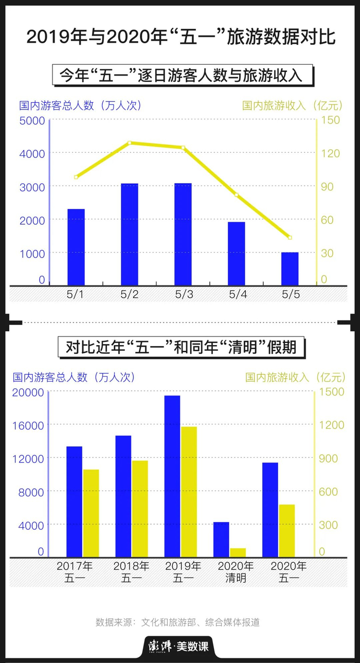 今年“五一”在比去年多一天的情况下,游客总人次仅为去年的58.97%;而国内的旅游收入仅为去年的40.4%。