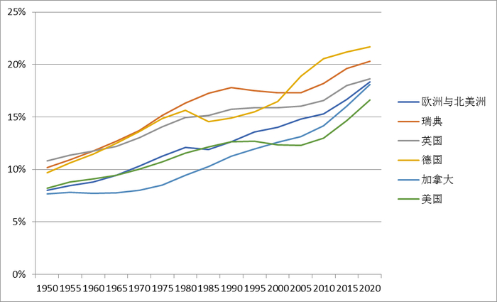 老龄人口比例的上升呼唤着更为普遍的社会福利,欣欣向荣的经济态势恰好为此提供动力,加之早就存在的法律依据——从1911年德国制定《养老保险法》开始,到1958年,几乎所有西欧国家都已完成养老保险制度的立法工作,欧美国家在养老保障方面走在了世界前沿。