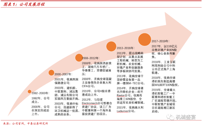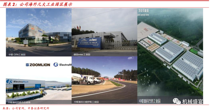 公司开创了中国工程机械行业整合海外资源的先河,并构建了全球化制造、销售、服务网络。公司在全球范围内整合优质资产,构建起全球化制造、销售、服务网络。截止目前,公司先后并购英国保路捷公司、意大利CIFA公司、德国M-tec公司、荷兰Raxtar公司、德国Wilbert公司,均取得卓越成效。其中,2008年并购世界第三大混凝土机械制造商意大利CIFA公司,使公司成为中国工程机械国际化的先行者和领导者;2018年并购全球塔机领先制造商德国威尔伯特,进军欧洲高端塔机市场,进一步巩固了公司的全球塔机龙头地位。公司构建了全球化制造、销售、服务网络,已覆盖全球100余个国家和地区,在“一带一路”沿线均有市场布局,在东亚、东南亚、欧洲等全球近20个国家建有分子公司,在意大利、德国、巴西、印度、白俄罗斯投资建有工业园,在土耳其、沙特拟新建工厂,并在全球设立50多个常驻机构。以阿联酋、巴西为中心,正逐步建立全球物流网络和零配件供应体系。实现了从“走出去”到“走进去”本地化运营的海外发展战略落地,为公司带来了新的发展机遇。