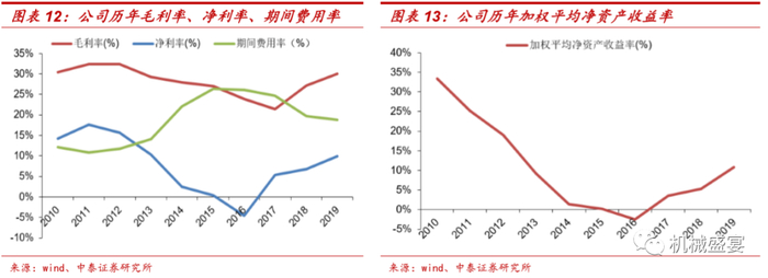 公司盈利能力逐步提升。公司毛利率、净利率自2017年起开始回升,期间费用率不断优化。2019年,公司毛利率达30.0%,同比提升2.9pct;净利率达9.9%,同比提升3.1pct;加权平均净资产收益率达10.8%,同比提升5.5pct;期间费用率为18.8%,同比降低1.0pct。公司毛利率、净利率、ROE水平均持续提升,整体盈利能力不断增强。