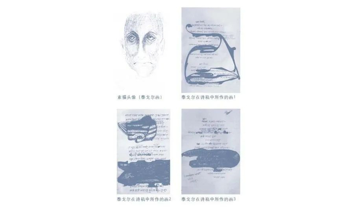 泰戈尔在诗稿中所作的画