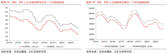 钴酸锂:至4月底,国内钴酸锂均价196.5元/公斤,同比下跌19%。向前看,iPhone SE以及旗舰手机厂商5G机型对于钴酸锂出货量的提振值得跟踪。